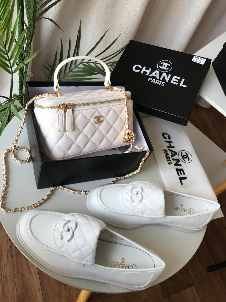طقم شنطه مع شوز يجمع بين الأناقة والراحة في تصميم واحد، ليضيف لمسة فاخرة إلى إطلالتك اليومية أو المسائية. يتكون الطقم من حذاء وشنطة من العلامة التجارية شانيل، مصممان بدقة ليوفران لكِ الراحة والمظهر العصري من متجر terbo .